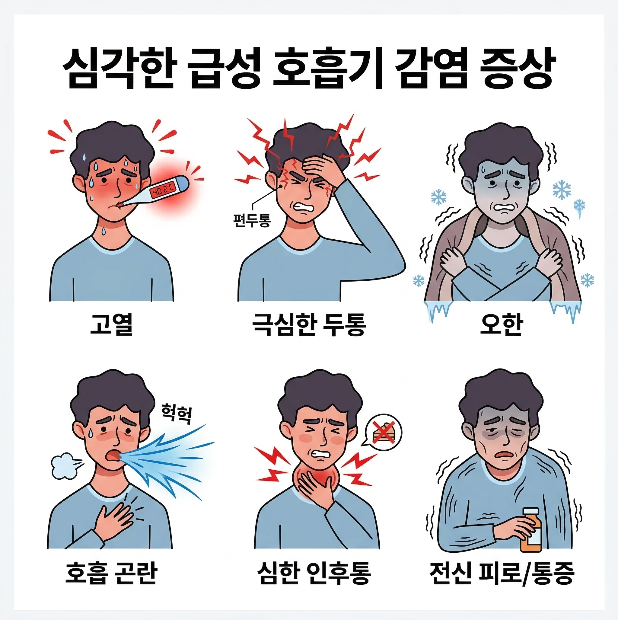 앞서 말했듯이 단백질의 서브타입이 많은 A형 바이러스에 감염되면 증상이 심하게 나타납니다. 우리가 알고 있는 유명한 독감인 신종플루, 홍콩 독감, 스페인 독감은 모두 A형 바이러스가 원인이며, A형 독감은 갑작스러운 고열이 발생하거나 두통, 관절통, 근육통, 콧물, 인후통, 기침 등 일반적인 독감 증상들과 함께 심한 무기력함이 나타나기도 합니다. 인간뿐만 아니라 다른 동물에도 동시 감염이 가능하며 전파 속도가 빠르고 광범위하기 때문에 전 세계적인 대유행을 발생시킵니다. 특히나, 유아나 노약자 등 면역력이 약한 사람들은 독감 증상이 장기화될 수 있을 뿐만 아니라 독감으로 인한 폐렴이나 합병증을 유발할 수 있으니 더욱더 조심해야 합니다.