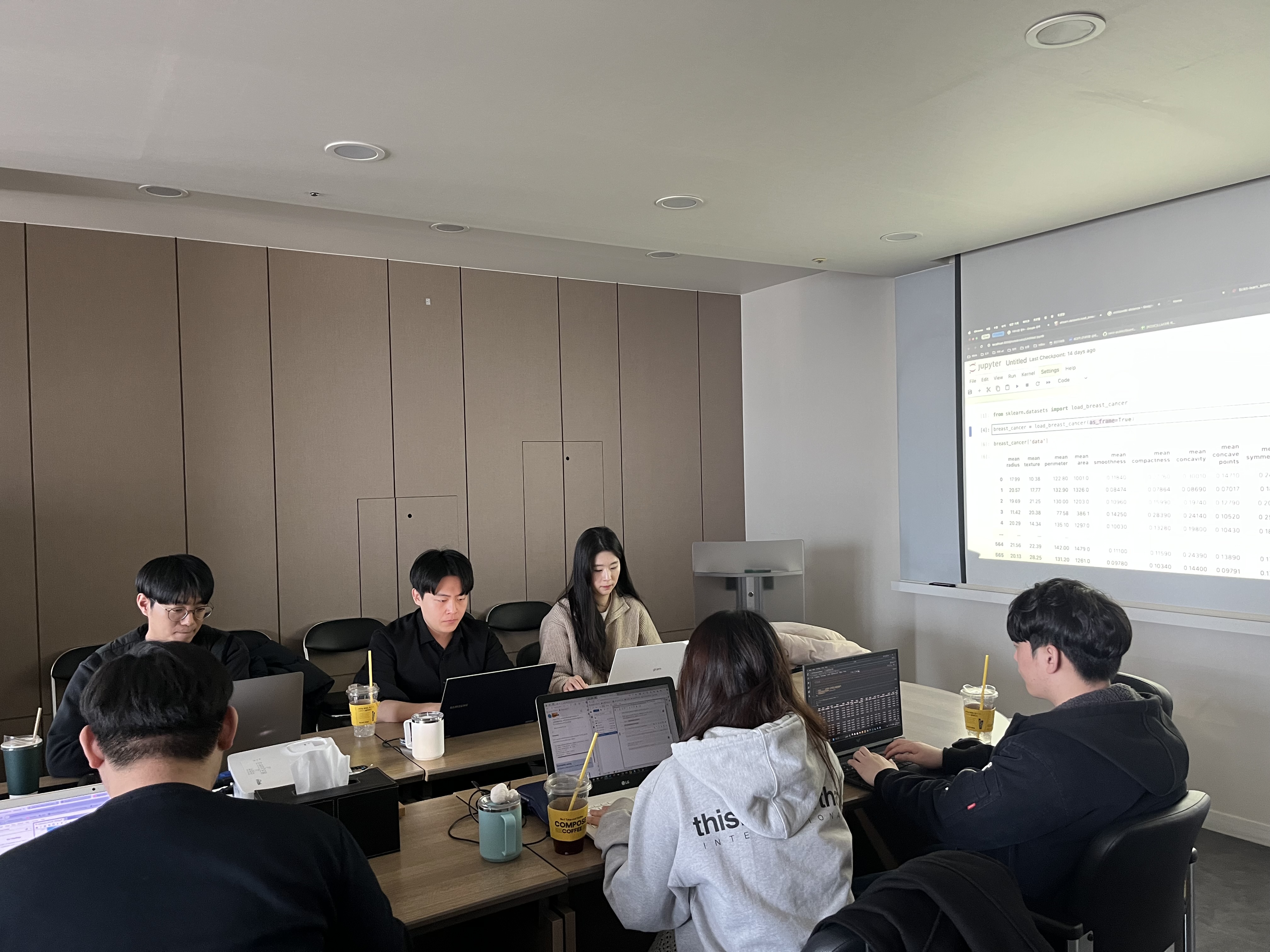 이렇듯 대부분의 수업이 현장에서 진행되는 실습 위주로 수업이 진행되고 이 과정에서 학교 수업에서 접할 수 없었던 최신 기술들을 많이 접할 수 있습니다. 전 코딩 경험도 없고 논문도 꽤 어려웠기에 이 모든 게 쉽지는 않았지만, 직원분들과 코딩을 경험해 본 동기들이 많이 도와주었고 또 다 같이 열심히 하자는 분위기가 조성되어 있었기에 더욱 힘내서 할 수 있었습니다.