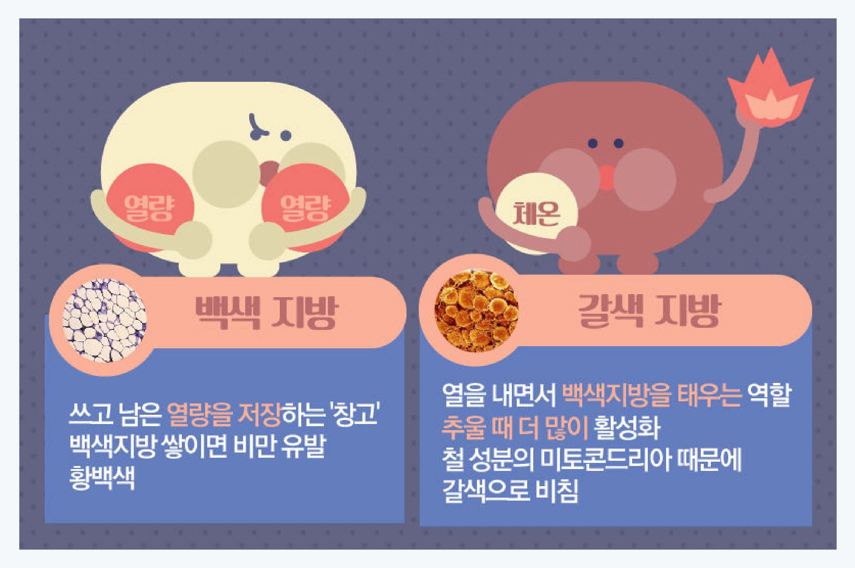 또 다른 연구 내용을 알려드리기에 앞서 사전 개념으로 갈색 지방에 대해 먼저 알아보겠습니다.