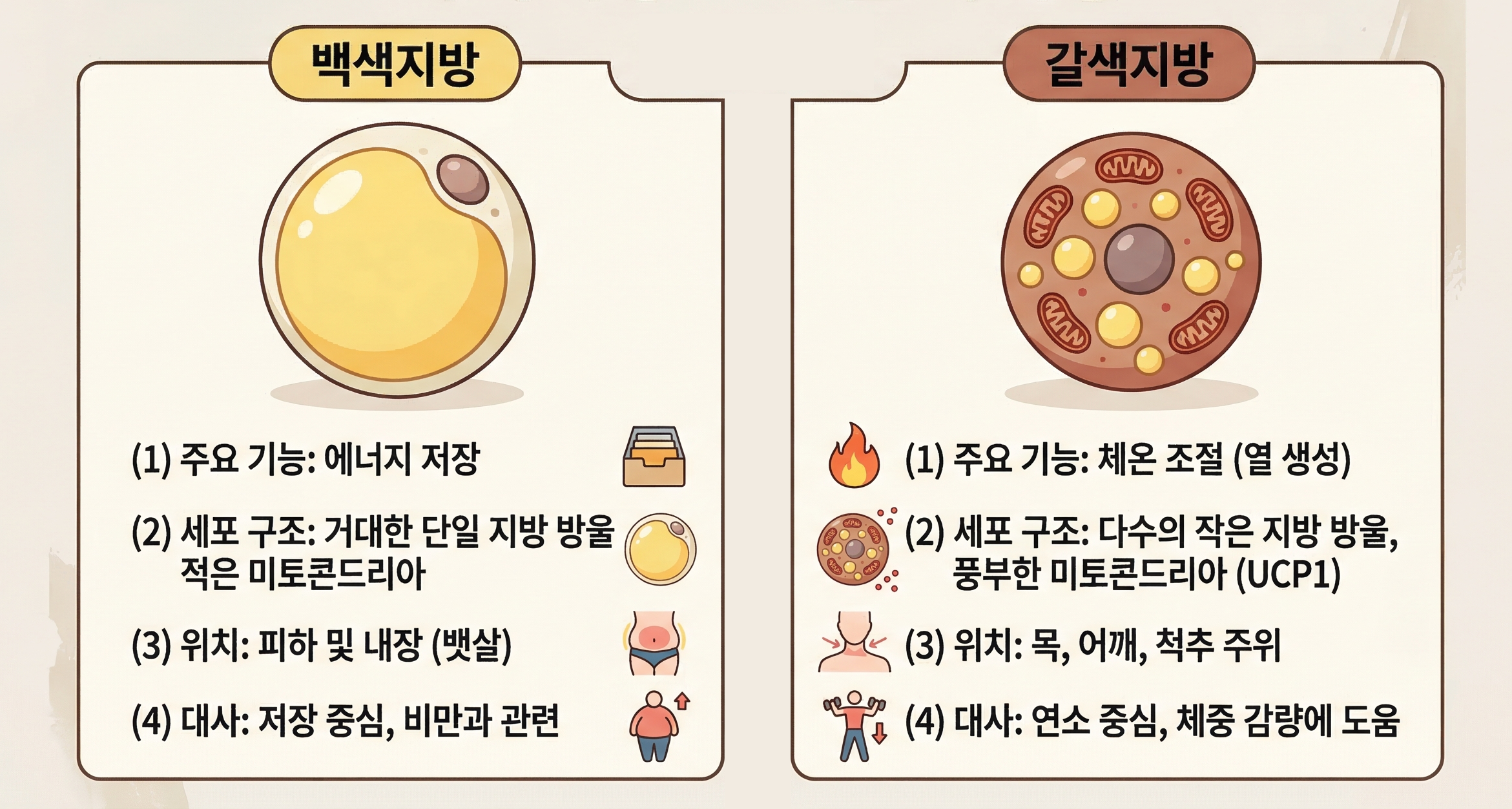 또 다른 연구 내용을 알려드리기에 앞서 사전 개념으로 갈색 지방에 대해 먼저 알아보겠습니다.