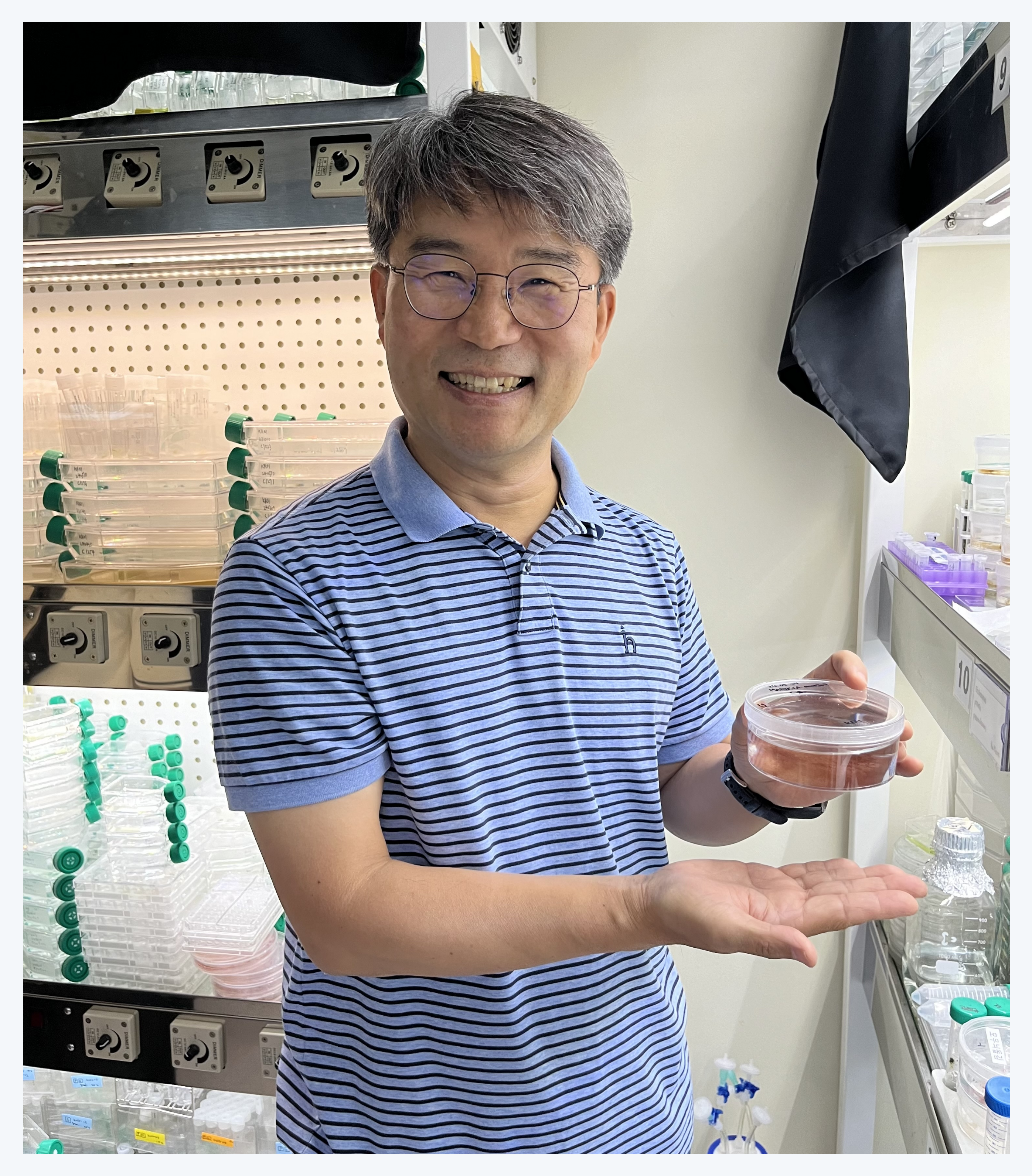 해양식물배양실에서 환하게 웃고 계신 윤환수 교수님