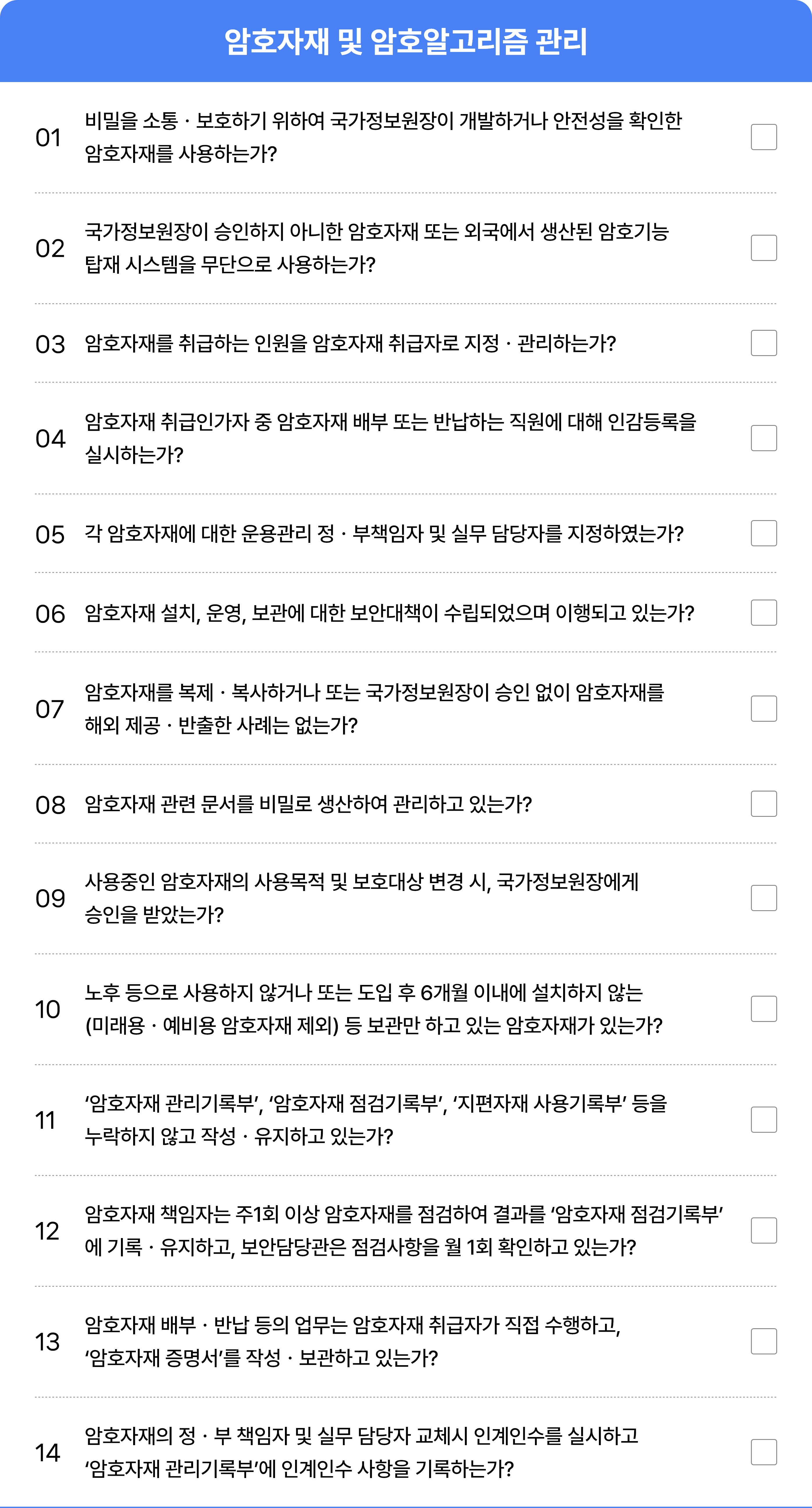 정보보안점검 체크리스트(출처: 국가법령정보센터)