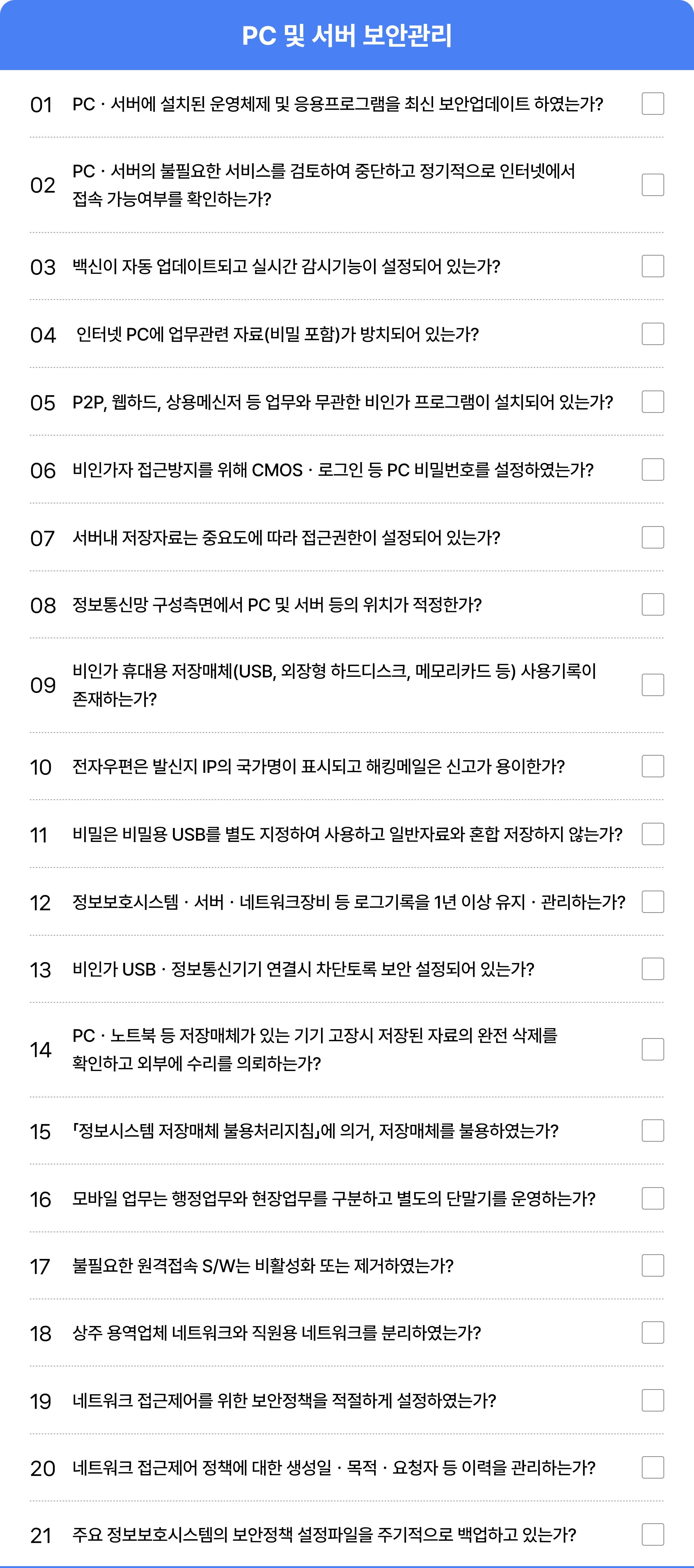 정보보안점검 체크리스트(출처: 국가법령정보센터)
