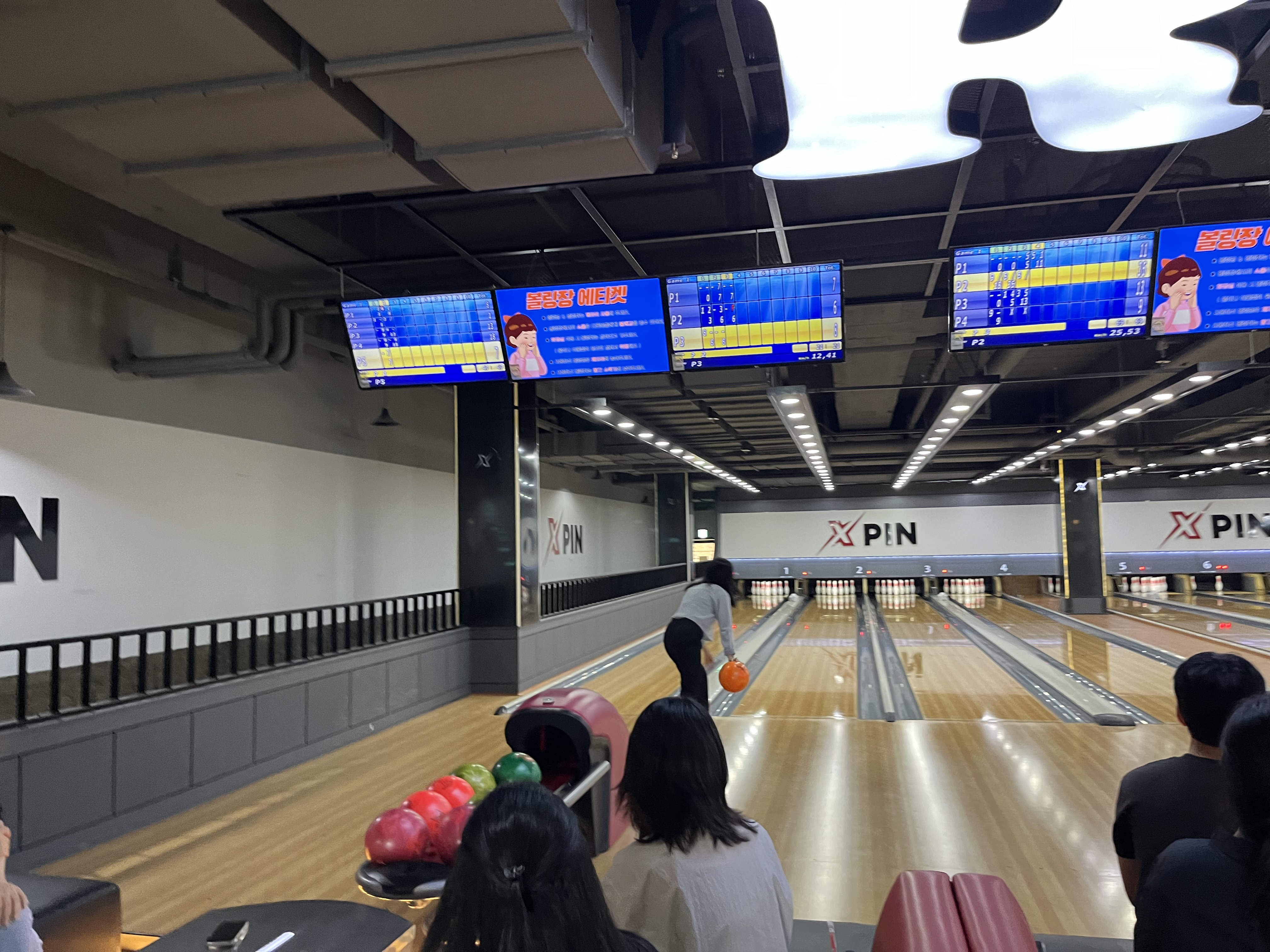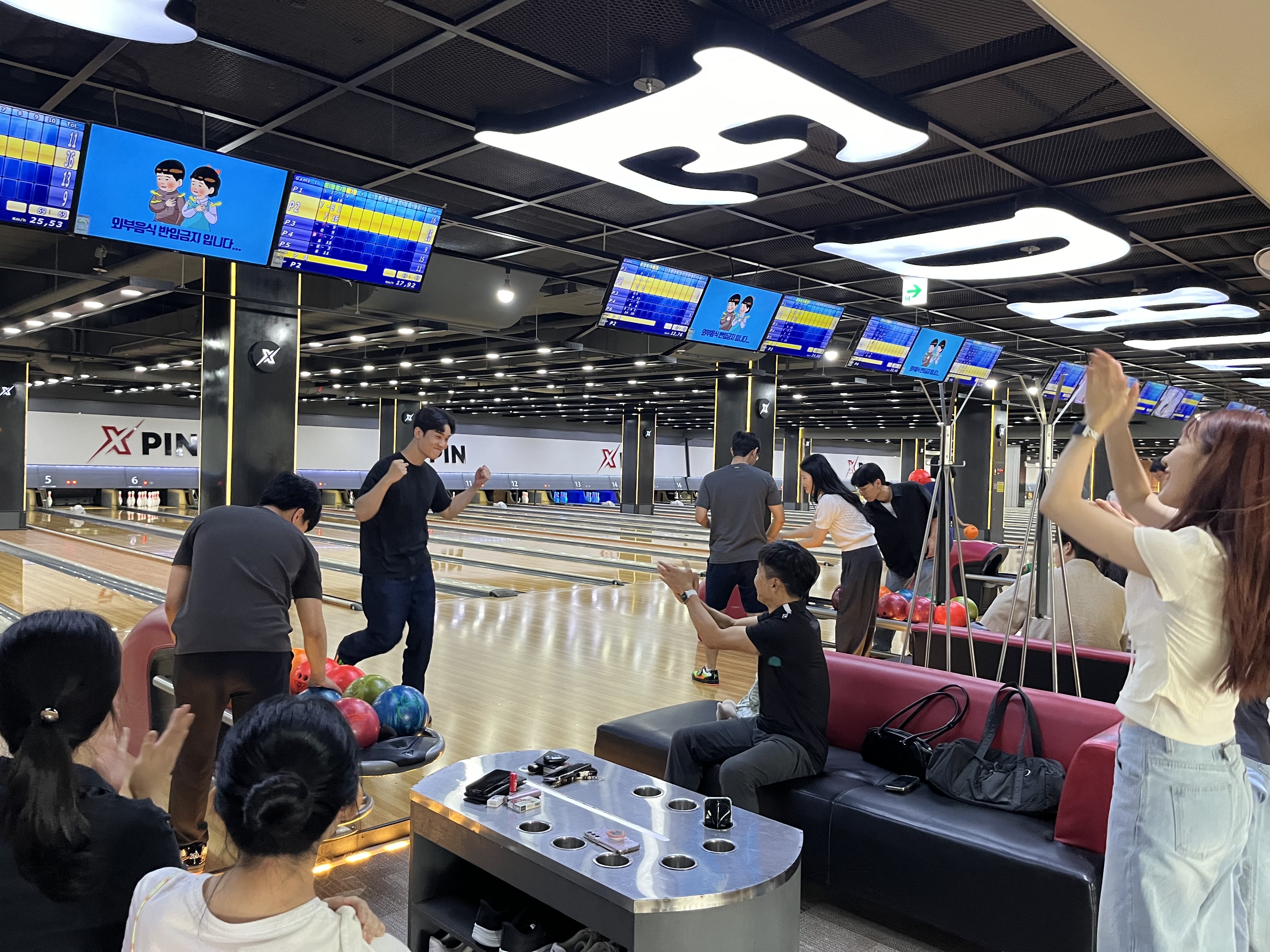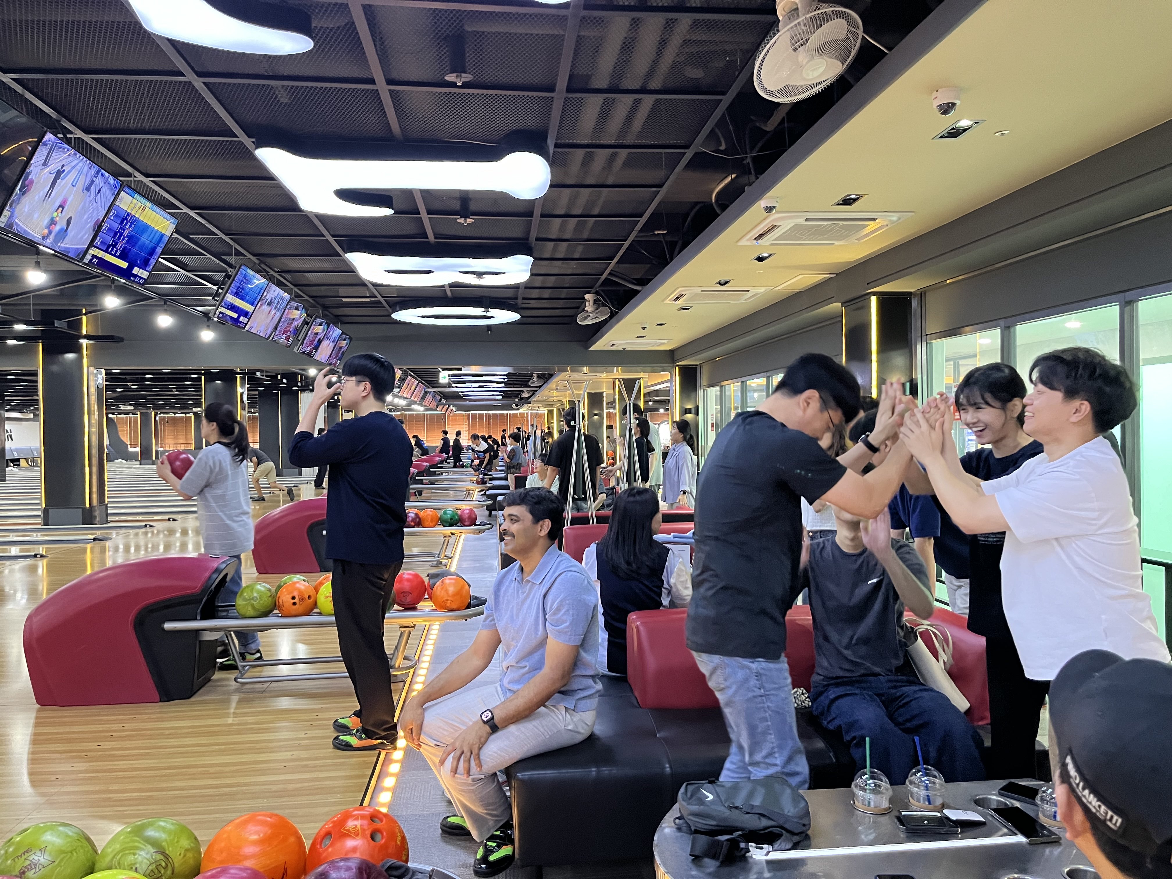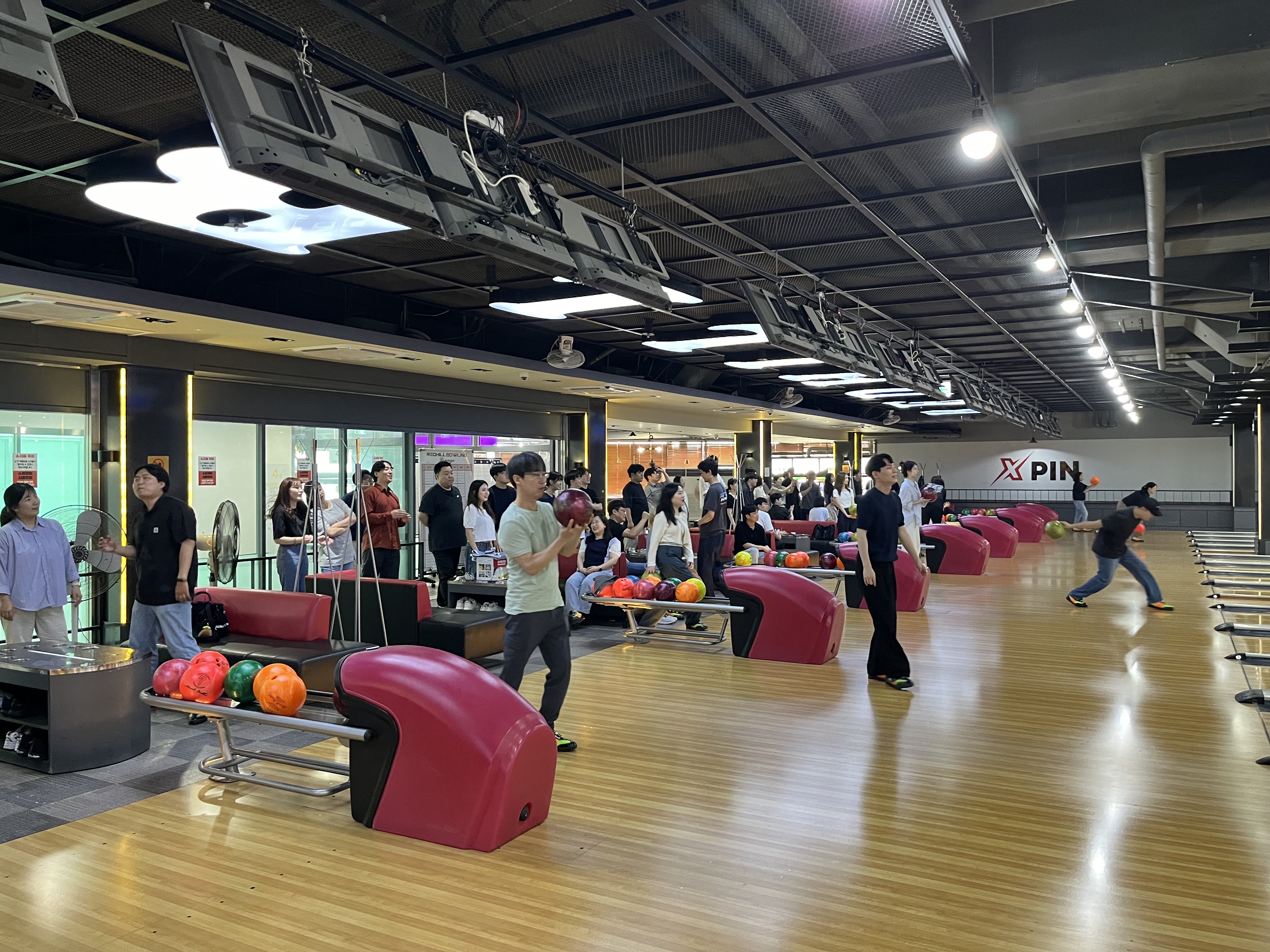 점심식사를 마치고 오후 2시 30분에 기흥 엑스핀볼링라운지에 모두 모였는데요, 레인이 36개나 있는 대형 볼링장이었습니다! 덕분에 쾌적한 환경에서 재밌게 볼링을 칠 수가 있었어요.