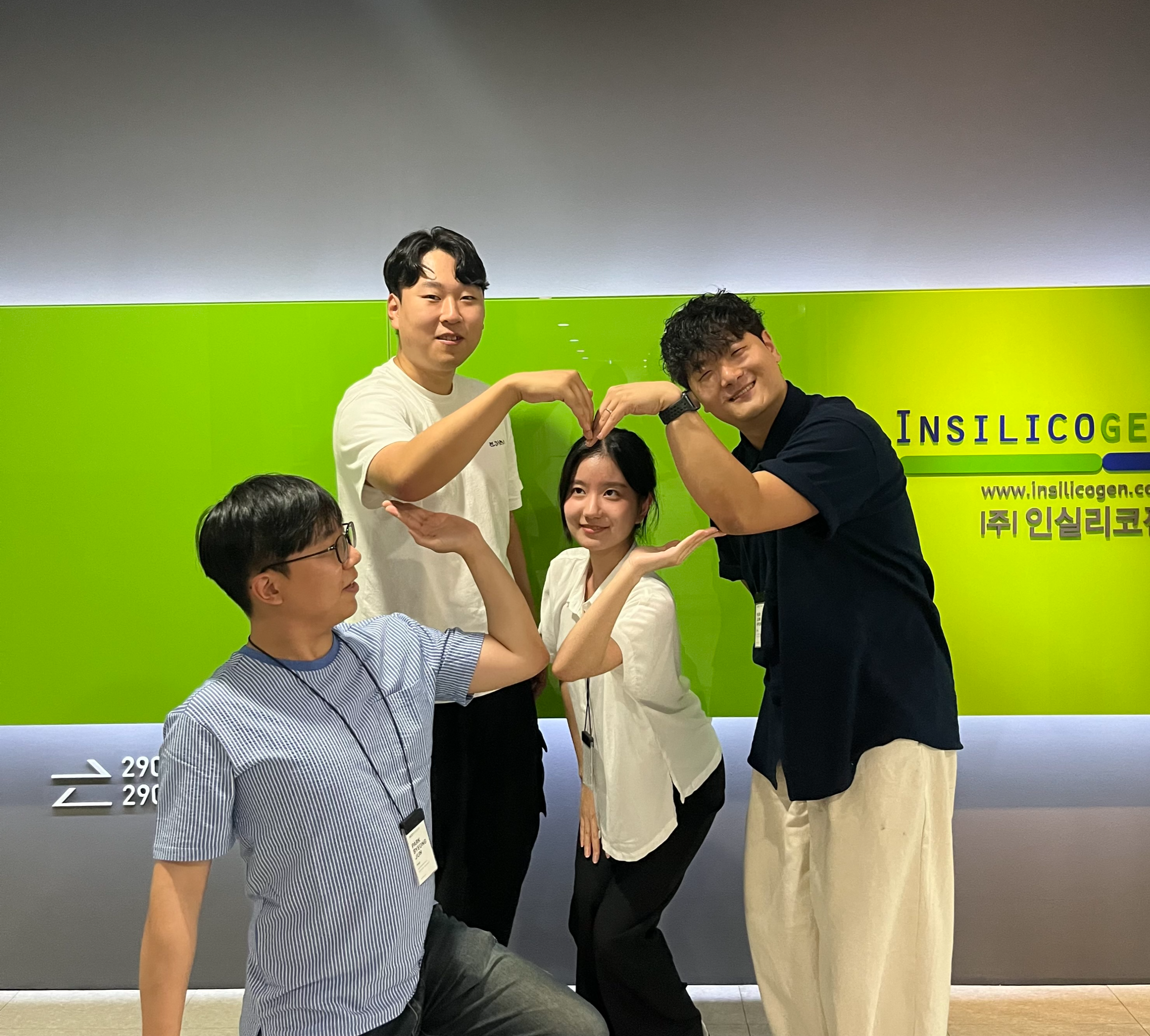 인턴십 합격 연락을 받고 긴장되는 마음으로 처음으로 인실리코젠에 출근을 했던 게 엊그제 같은데 한 달이라는 시간이 순식간에 지나간 것 같습니다. 이번 인코인턴십을 통해서 공통적인 관심사를 가진 다양한 사람들을 만나서 같은 내용을 배우며 서로 공부하고 함께 좋은 경험을 하면서 다 같이 성장한 것 같아서 좋은 배움의 기회를 만들어주신 인실리코젠과 함께 노력하면서 인턴십의 시간을 보내왔던 동기분들께 감사하다는 말씀을 드리고 싶습니다.