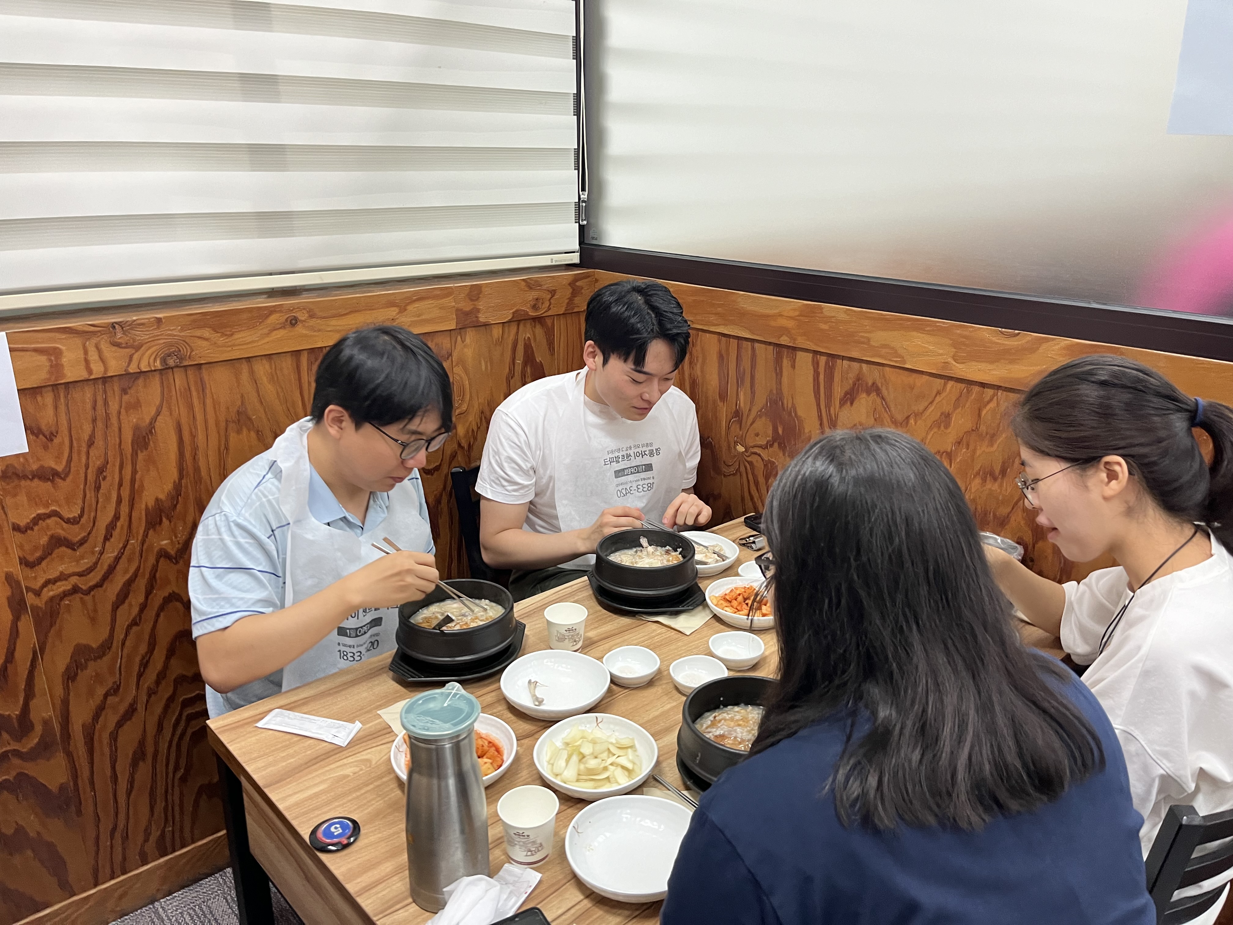 또, 초복에 다 같이 삼계탕을 먹으러 간 것도 좋은 기억이었습니다. 인턴에게도 사주실 줄은 몰랐는데 다 함께 챙겨주는 부분에서 인실리코젠 회사의 따뜻한 공동체 분위기를 느낄 수 있었습니다. 월요세미나에서 자기소개를 했었는데, 최남우 사장님과 박소희 연구원님 등 생각보다 많은 분들이 그 내용을 기억해 주셔서 감동을 받기도 했습니다. 짧은 1달간의 교육 프로그램이었지만, 많은 것을 얻어갈 수 있었던 기회였던 것 같습니다. 인실리코젠에서의 경험을 기반으로, 앞으로도 성장해 나가는 생명 정보 엔지니어가 되기 위해 노력하겠습니다. 감사합니다. 번창하세요!
