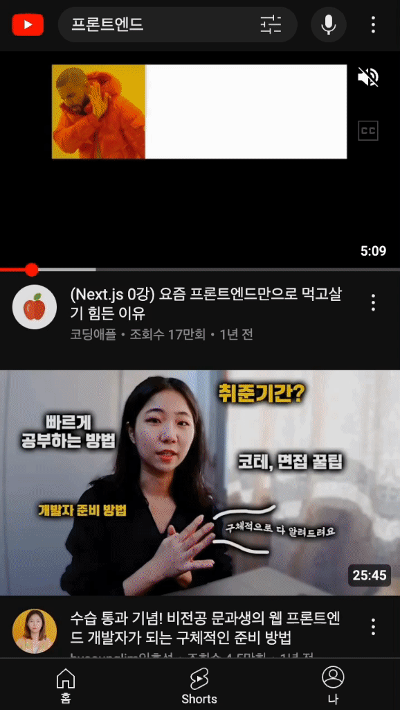 무한스크롤을 사용한 사이트 예시(출처: 유튜브)