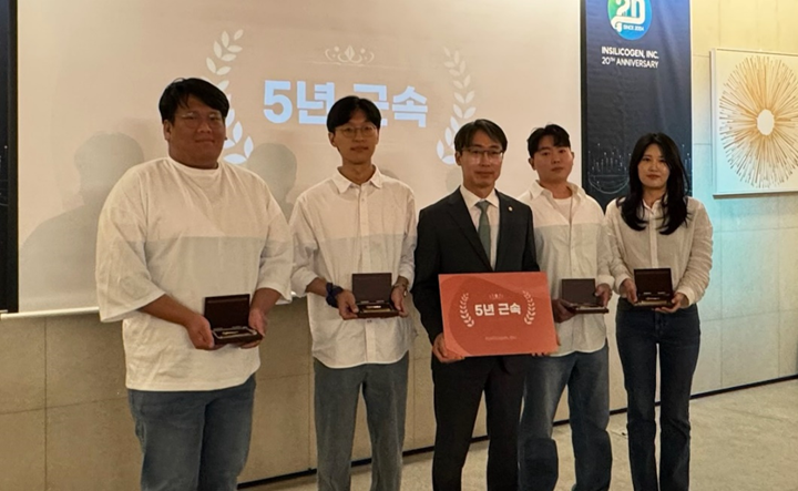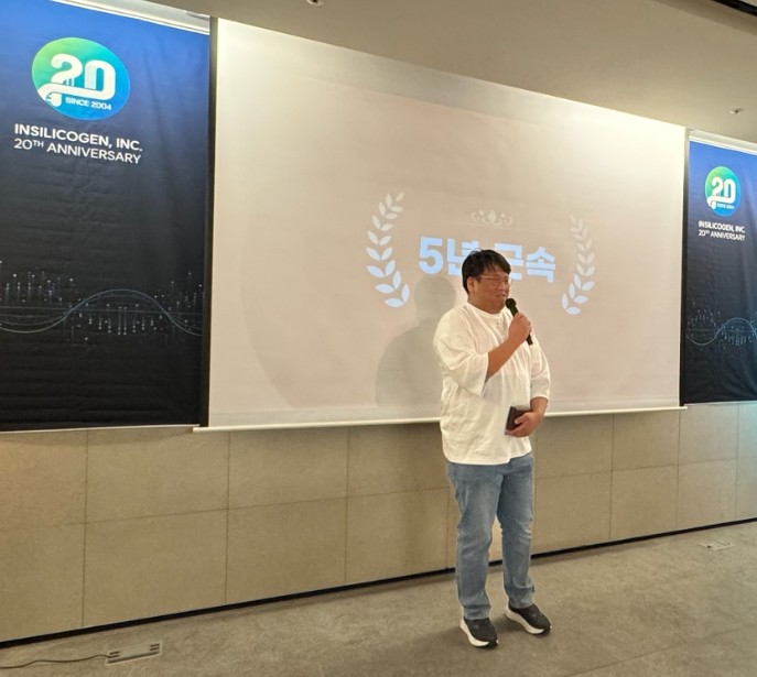 (주)인실리코젠의 창립 20주년이라는 뜻깊은 날에 저의 근속 5년을 함께 기념할 수 있어 매우 영광입니다. 사회에 첫발을 내디딘 곳에서 어느덧 5년이라는 시간을 함께하게 되어, 회사와 동료들에 대한 감사한 마음이 더욱 깊어지는 순간입니다. 시간이 흐르고 경력이 쌓일수록, 세상에 당연한 것은 없다는 사실을 절실히 깨닫습니다. 지금 이 자리에 있을 수 있도록 이끌어주신 사장님과 RDC팀, 그리고 각자의 자리에서 최선을 다하고 계신 인코인 동료 여러분 덕분이라고 생각합니다. 앞으로도 받은 마음에 보답하기 위해 제 자리에서 최선을 다하겠습니다. '데이터 바이오’의 선도 기업인 인실리코젠과 함께 즐겁게 일하며, 더 큰 목표를 향해 나아가겠습니다. 인실리코젠의 더 밝은 미래를 기대하며, 저 또한 한층 더 성장할 수 있도록 끊임없이 노력하겠습니다.