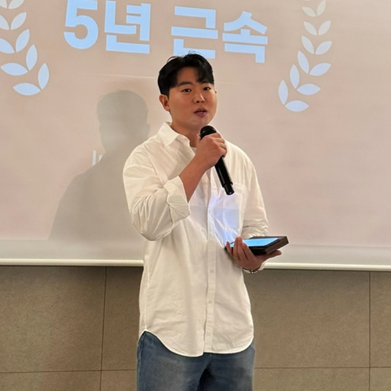 안녕하세요, 이상민입니다. 우선, 회사 창립 20주년을 진심으로 축하드립니다. 이런 뜻깊은 날 장기근속상을 받게 되어 매우 기쁘고, 회사가 설립된 절반의 시간을 함께할 수 있어 큰 영광입니다. 지난 10년간 함께 성장해 온 동료분들과 항상 올바른 방향으로 이끌어주신 대표님께 진심으로 감사드립니다. 앞으로도 변함없이 최선을 다해 회사가 더욱 성장하고 발전할 수 있도록 힘쓰겠습니다. 이 자리에 설 수 있도록 아낌없는 격려와 응원을 보내주신 모든 분께 다시 한번 감사드리며, 앞으로도 데이터 바이오 기업으로써 새로운 10년을 함께 만들어 가길 기대합니다.