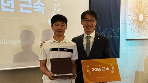 20년 근속이라니! 그동안의 시간이 주마등처럼 지나가며 눈시울이 뜨거워지는 걸 느낍니다. 시작의 순간에는 성공하는 스타트업이 될 거라는 기대감, 이후 이대로 잘할 수 있을까 많은 고민이 있었고, 이제는 지속 가능하며 늘 발전하는 조직을 함께 만들겠다는 신념으로 지금까지 있을 수 있었습니다. 그리고, 계속하여 비전을 제시하는 사장님, 서로에게 좋은 동료가 되고자 노력하는 모두가 있었기에 가능했습니다. 직장은 인생에 있어 아주 중요한 인연일 겁니다. 저에게 인실리코젠은 소중히 잘 가꾸고 싶은 인연이고, 언제까지나 함께 하고자 합니다. 30주년, 50주년의 순간에도 함께 할 수 있도록 노력하겠습니다. 감사합니다!