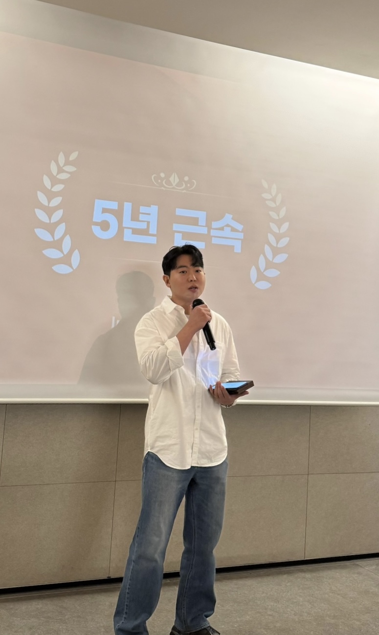 - 5년 근속: 손효정 선임, 이용태 선임, 조항철 선임, 김형민 선임
