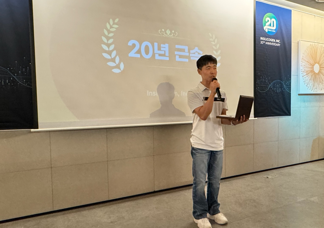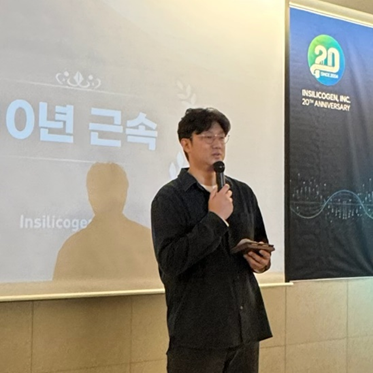 (주)인실리코젠의 창립 20주년이라는 뜻깊은 날에 저의 근속 5년을 함께 기념할 수 있어 매우 영광입니다. 사회에 첫발을 내디딘 곳에서 어느덧 5년이라는 시간을 함께하게 되어, 회사와 동료들에 대한 감사한 마음이 더욱 깊어지는 순간입니다. 시간이 흐르고 경력이 쌓일수록, 세상에 당연한 것은 없다는 사실을 절실히 깨닫습니다. 지금 이 자리에 있을 수 있도록 이끌어주신 사장님과 RDC팀, 그리고 각자의 자리에서 최선을 다하고 계신 인코인 동료 여러분 덕분이라고 생각합니다. 앞으로도 받은 마음에 보답하기 위해 제 자리에서 최선을 다하겠습니다. '데이터 바이오’의 선도 기업인 인실리코젠과 함께 즐겁게 일하며, 더 큰 목표를 향해 나아가겠습니다. 인실리코젠의 더 밝은 미래를 기대하며, 저 또한 한층 더 성장할 수 있도록 끊임없이 노력하겠습니다.