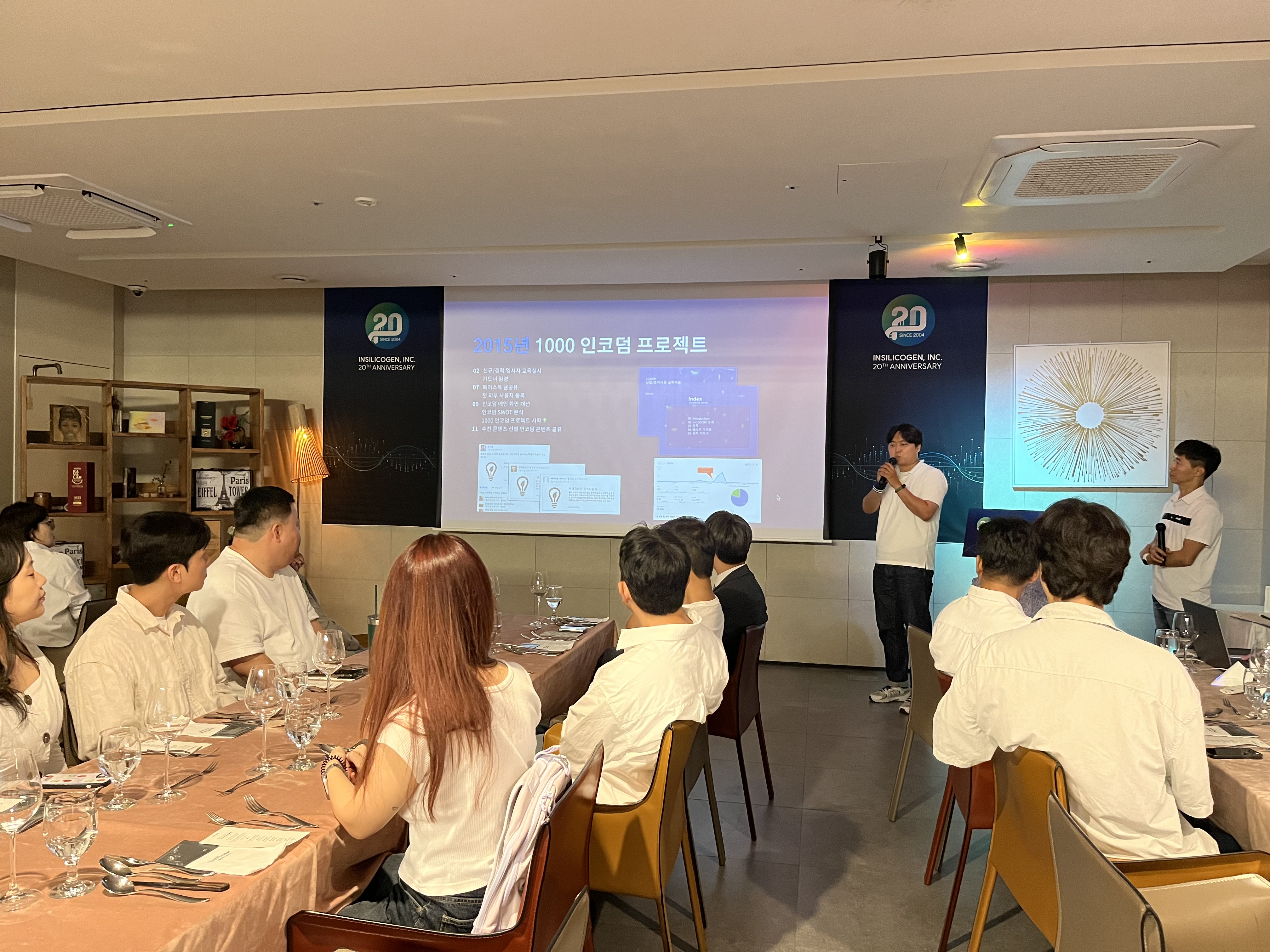 김형용 이사님께서 지난 20년간 인실리코젠이 어떻게 성장해왔는지 히스토리를 생생하게 공유해 주셨습니다. 창립 초기의 어려움과 이를 극복하며 이룬 성과를 통해, 오늘날의 인실리코젠이 어떻게 만들어졌는지 알 수 있는 뜻깊은 시간이었습니다.