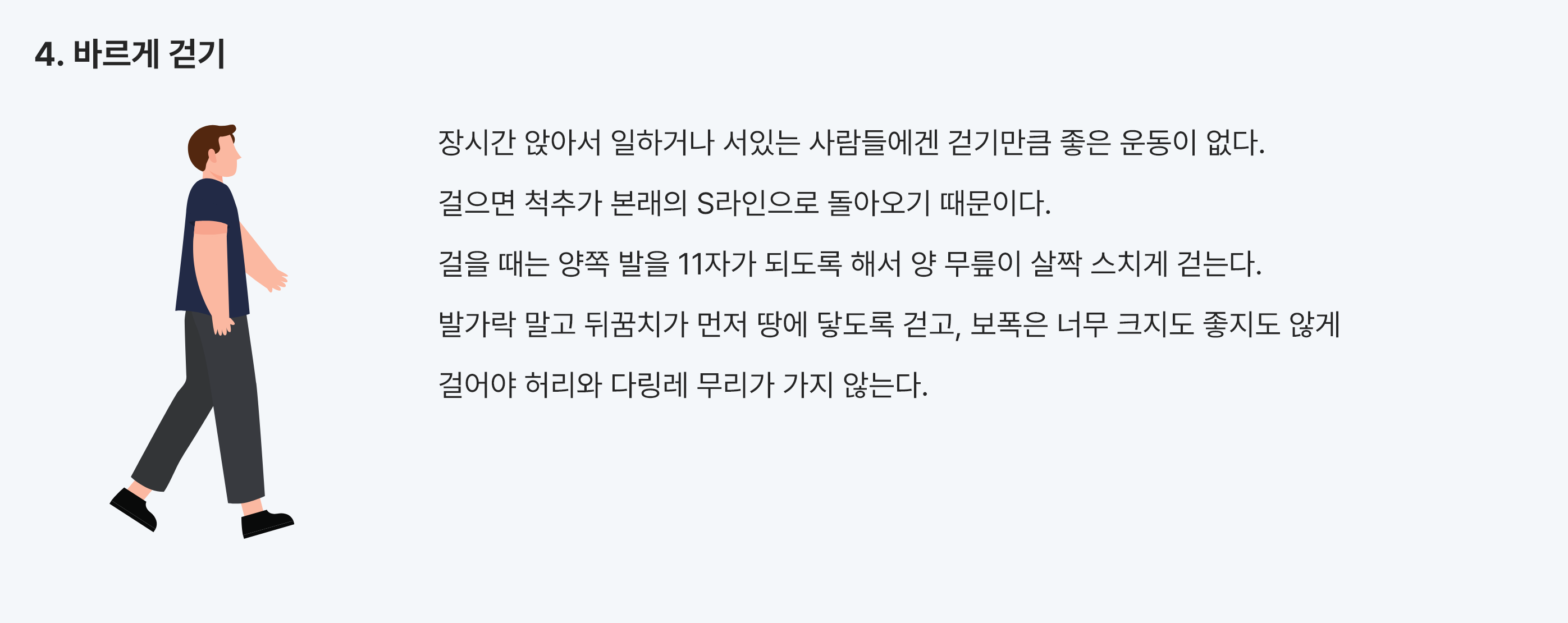 몇 년 전, 저는 허리 디스크 판정을 받았습니다. 원인을 돌아보니 짝다리로 서 있거나, 다리를 꼬고 앉는 습관, 구부정한 자세가 문제였습니다. 이 올바르지 않은 자세들이 결국 제 허리에 무리를 주었던 것이죠.