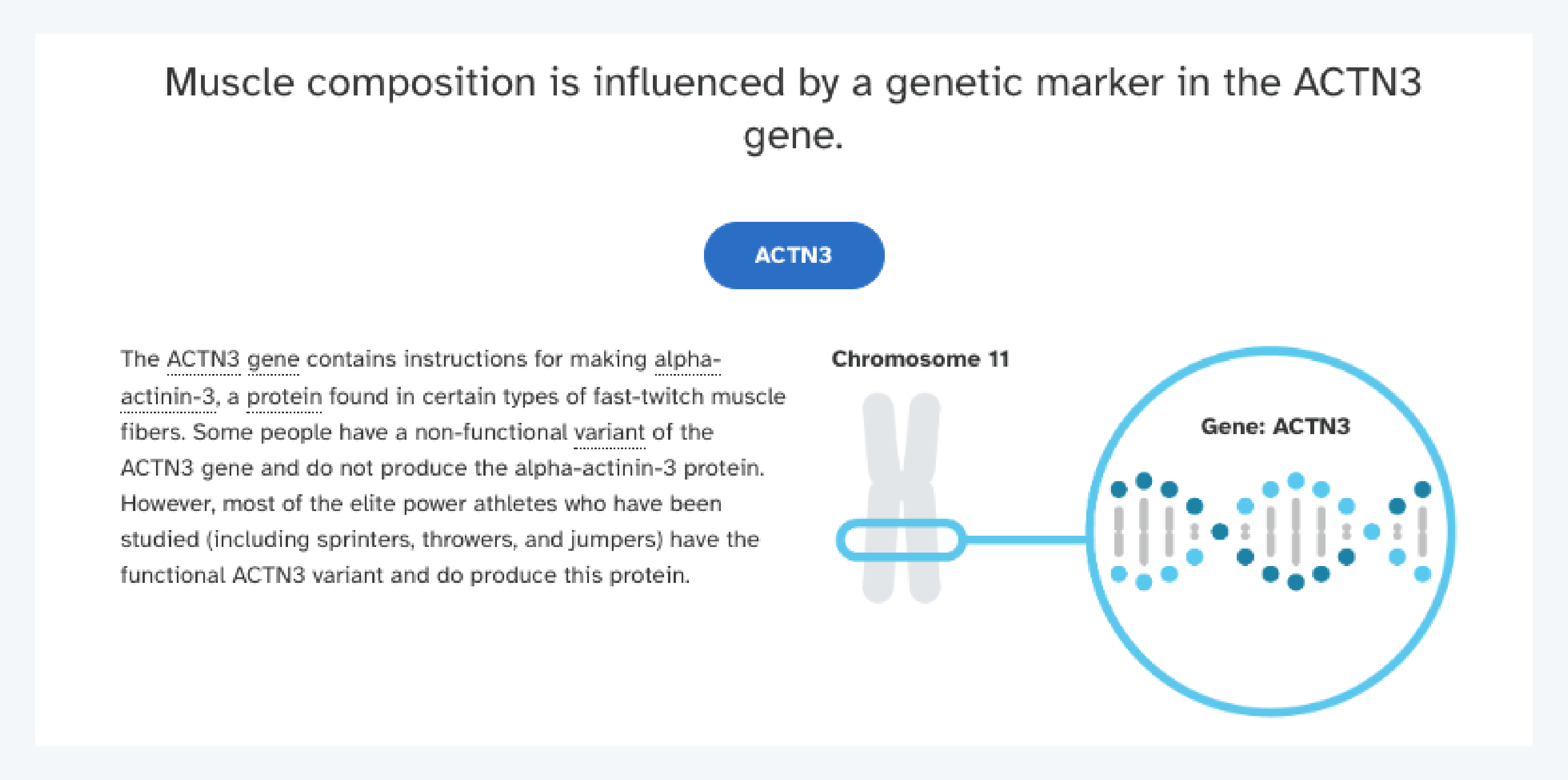 23andMe 유전자 리포트 내 ACTN3 유전자 설명