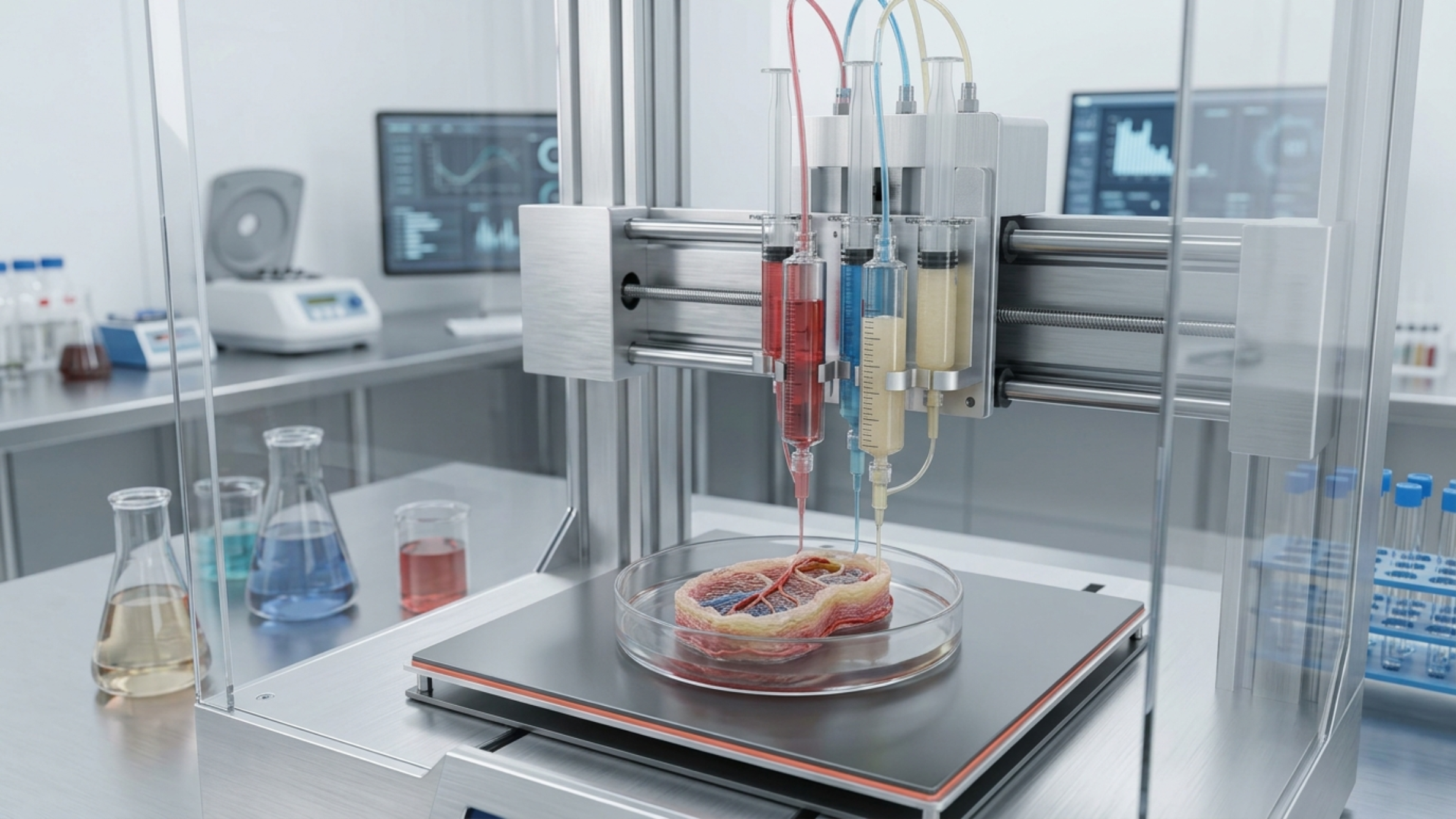 또 하나 주목할 기술은 3D 바이오 프린팅입니다. 잉크 대신 살아 있는 세포를 이용해 인체 조직을 층층이 쌓아 올리는 이 기술은