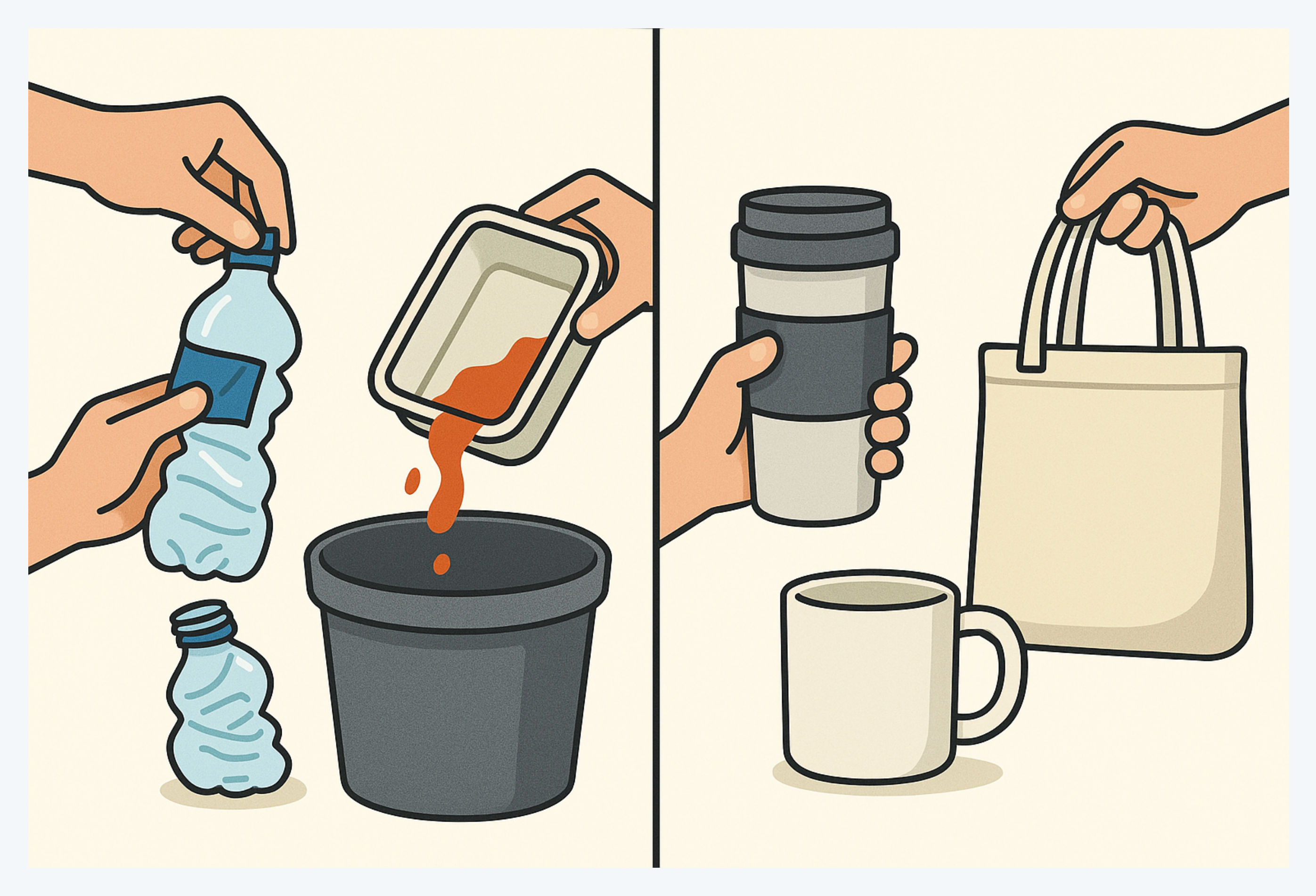 - 일회용 플라스틱 줄이기: 개인용 텀블러, 에코백 사용
