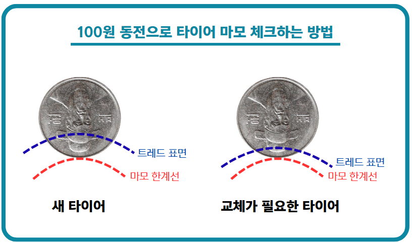 100원 동전을 활용한 타이어 마모 체크법