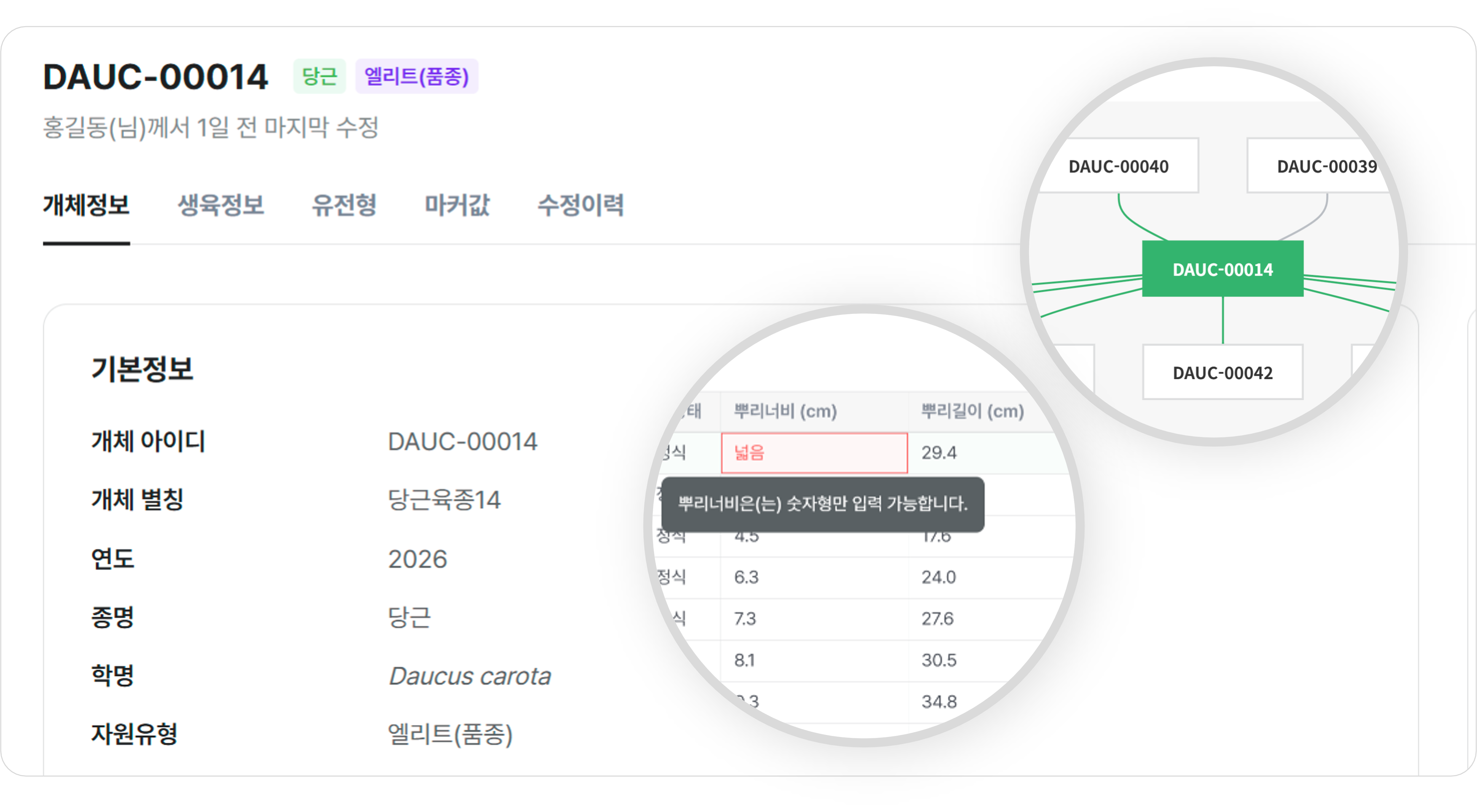 유전자원의 기본 정보와 계통 정보