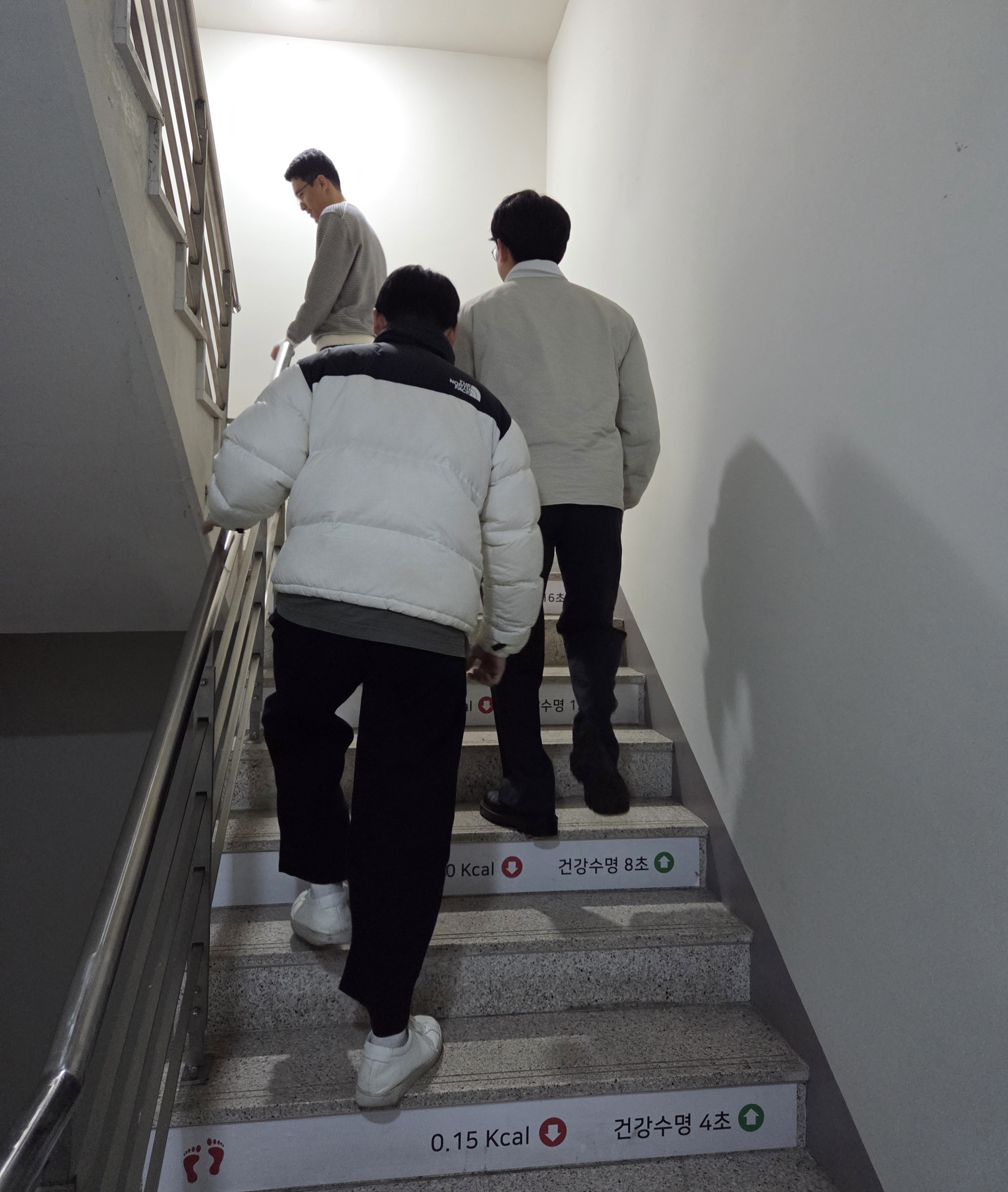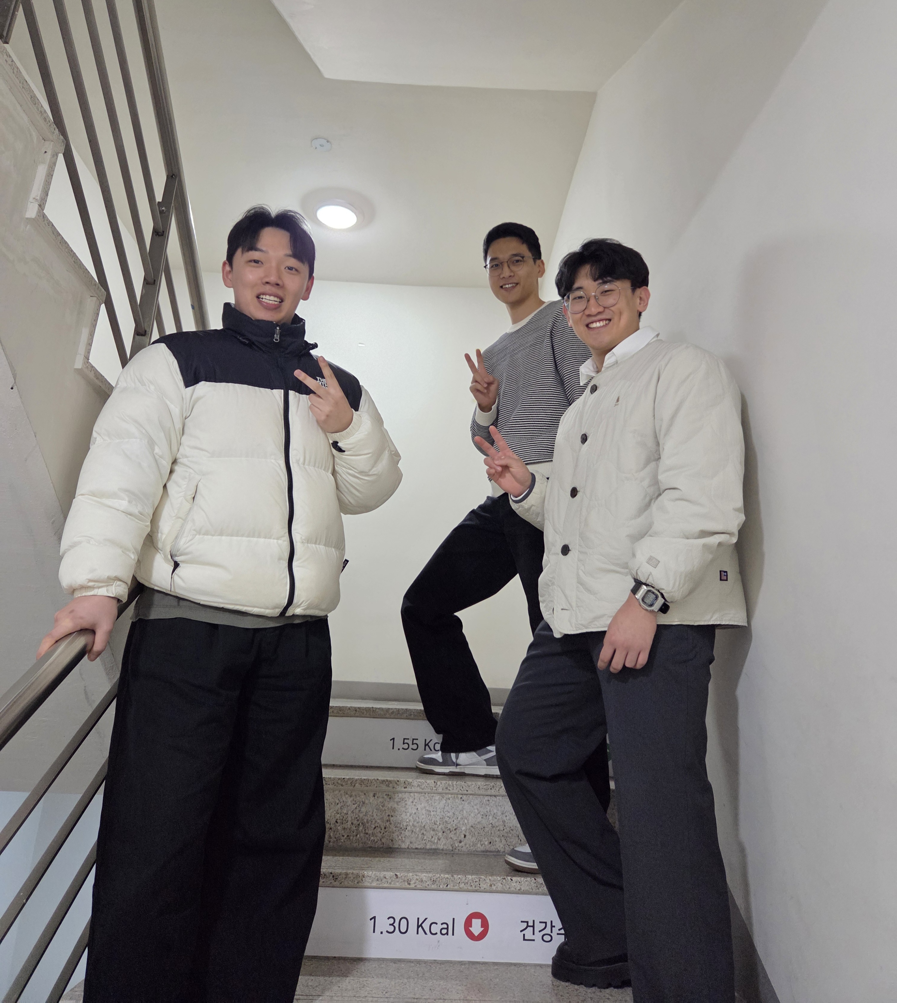 인코인턴십을 거쳐 신입사원이 된 iLAB 김성욱씨, RDC 권기정씨, iFC 김도현씨는 점심시간에 함께 10층까지 계단 타기를 하며, 신입사원으로서의 열정을 이어가고 있습니다!
