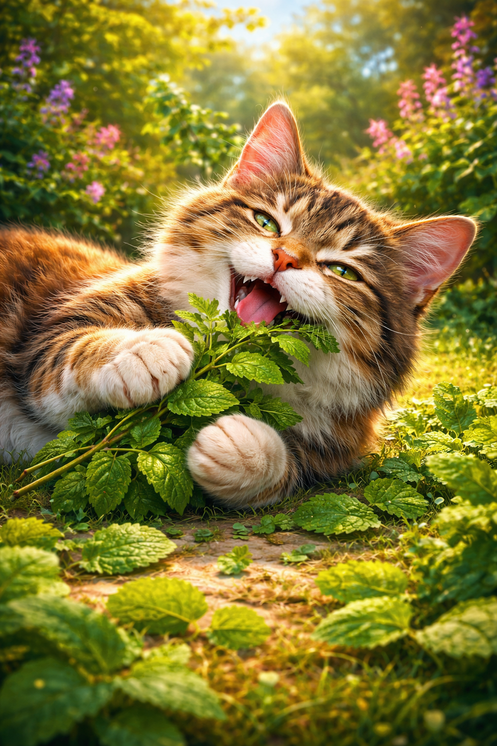 캣닙과 함께 행복한 고양이