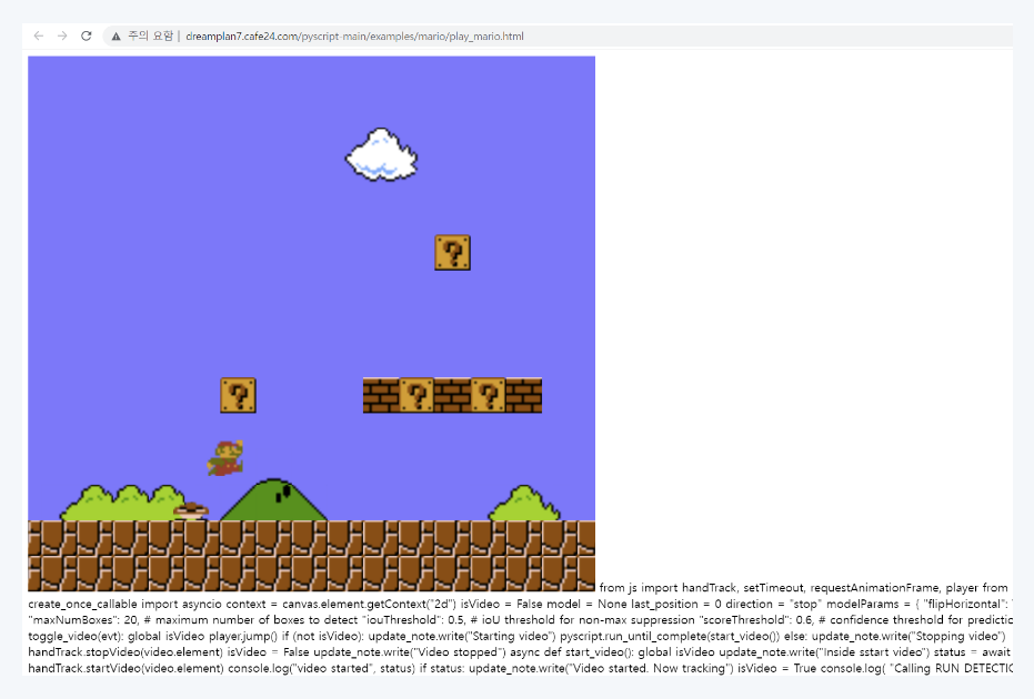 추가로 슈퍼마리오를 PyScript로 구현한 예제가 있는데 이처럼 Python으로 구현된 응용프로그램이 browser로 구현됐을 땐 웹 생태계가 많이 풍부해질 것으로 예측됩니다.