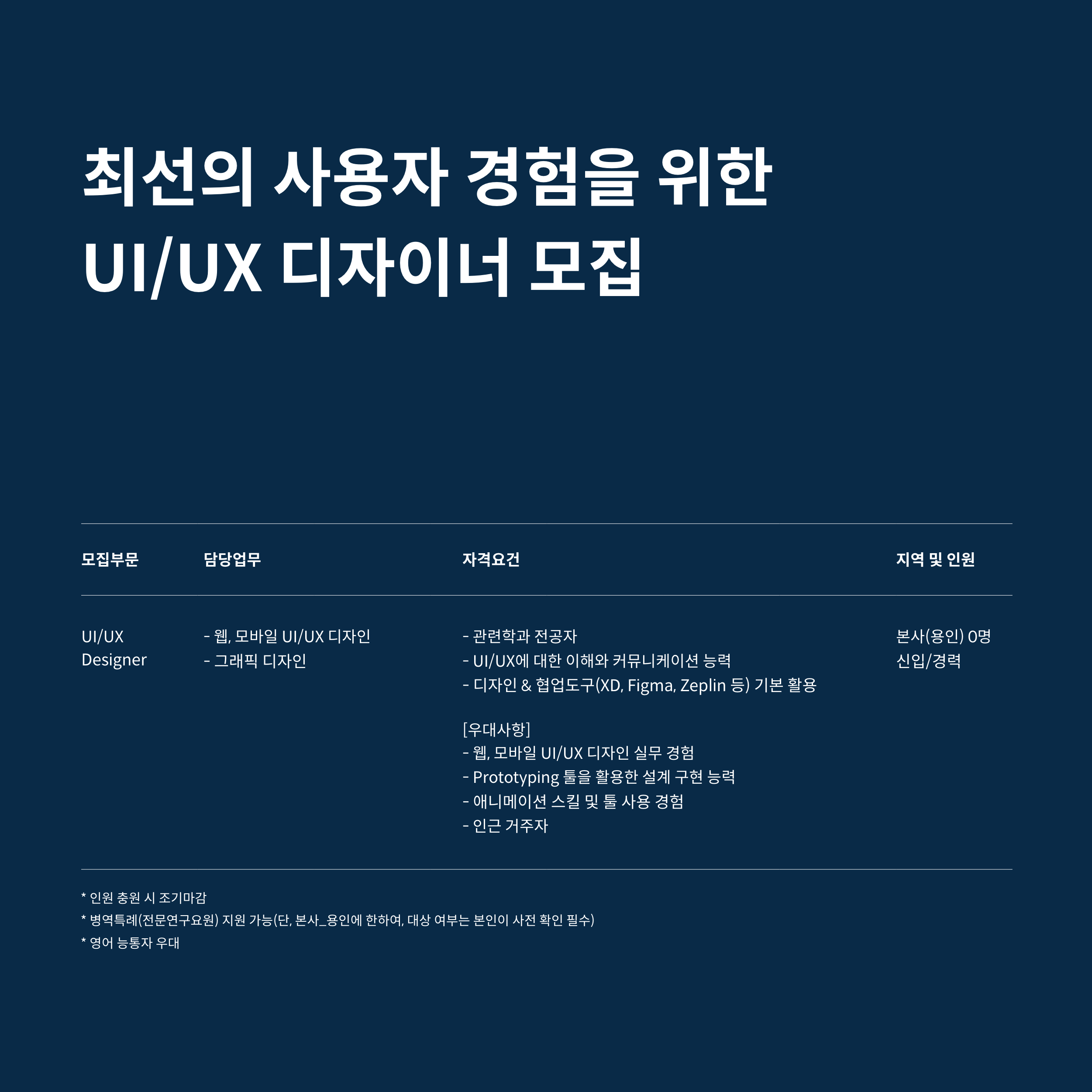 - UI/UX 디자이너 : 포트폴리오 제출 필수