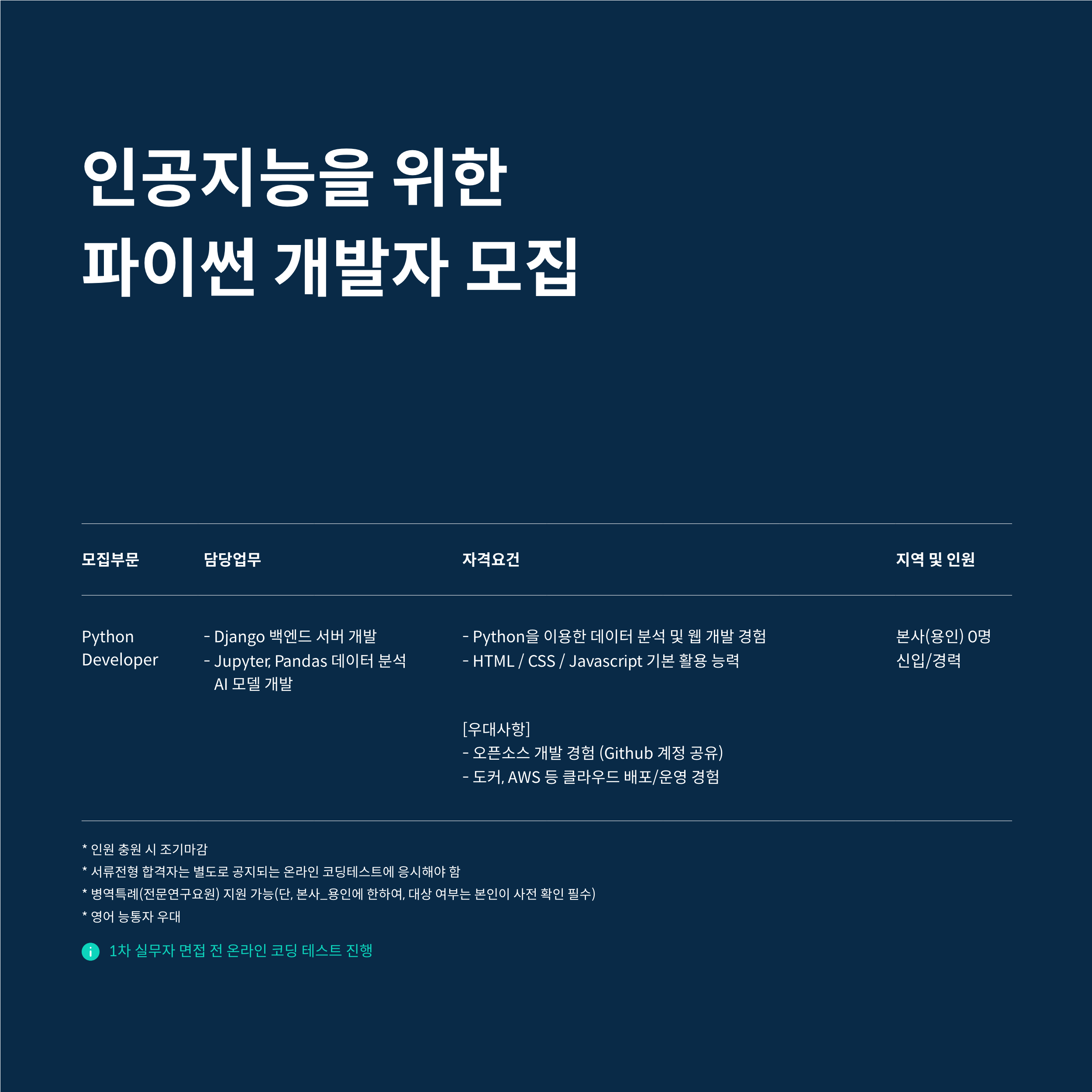- 파이썬 프로그래머 : 1차 실무자 면접 전 온라인 코딩테스트 진행