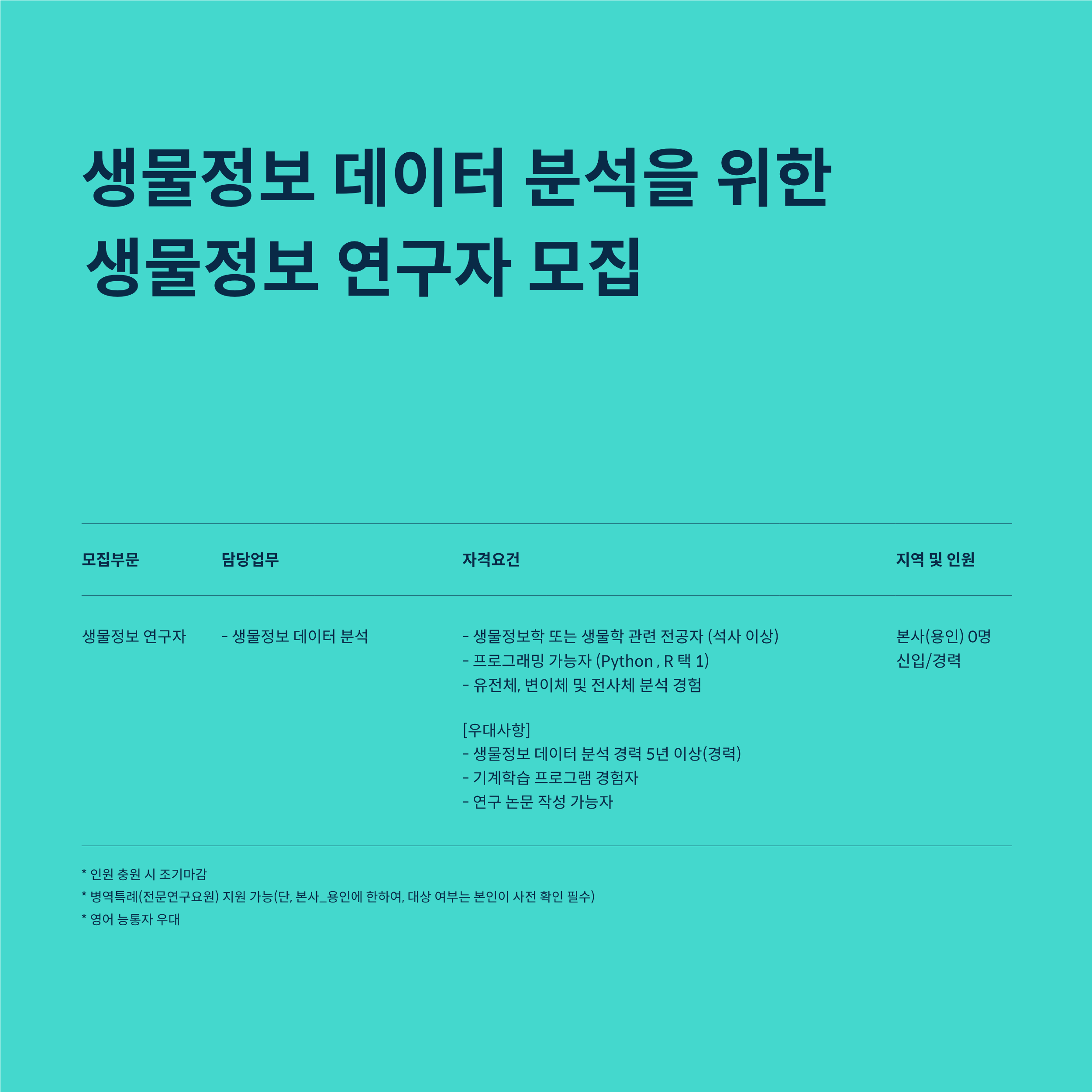 - ㈜인실리코젠 채용담당자 / 031-278-0061 (내선740번)