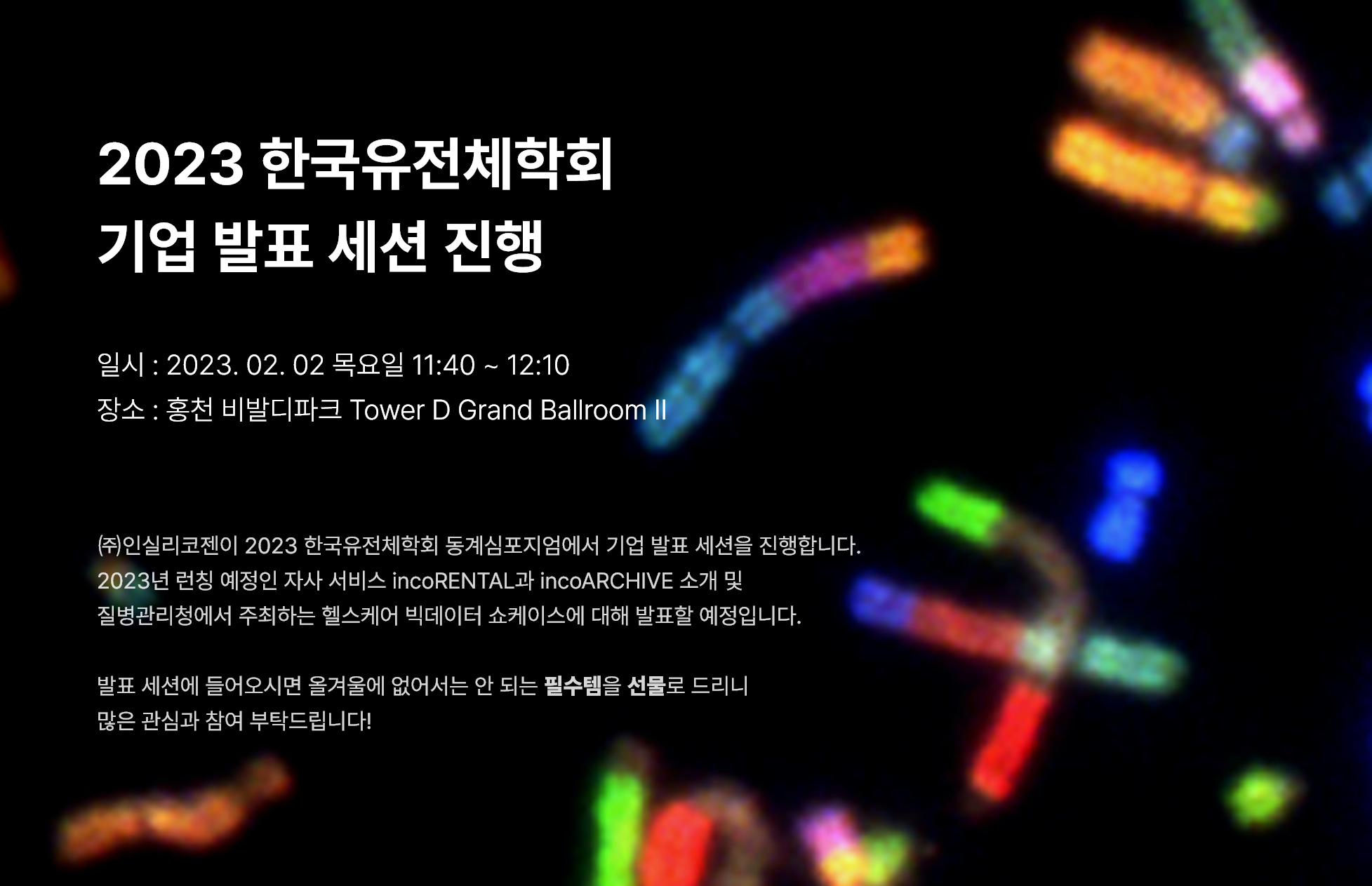 | [교육안내] 제49회 人CoSEMINAR - NGS 시대의 분석 전략 IV: 임상 유전체, 전사체, 마이크로바이옴 연구 (0) | 2023.05.16 |